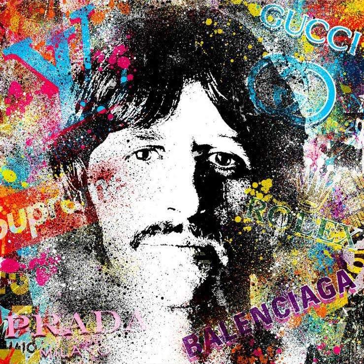 About this piece: Ringo Starr (The Beatles) by Agent X is a limited edition fine art archival pigment print on 310gsm hahnemuhle paper (56cm x 56cm) edition of 125. Framed option available in either black or white frame with standard glass.