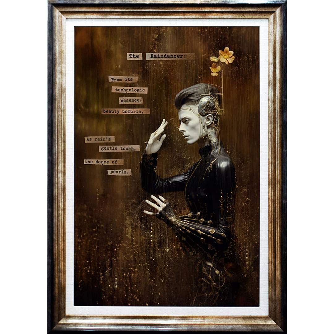 Introducing “Raindancer” by Alex Mayhew, a captivating masterpiece that stands as a testament to David Bowie’s iconic metamorphosis and ever-changing persona. As part of the renowned artist’s “Bowie Bots” series, this unique artwork captures the essence of Bowie’s transformative journey through a mesmerizing fusion of art and technology.