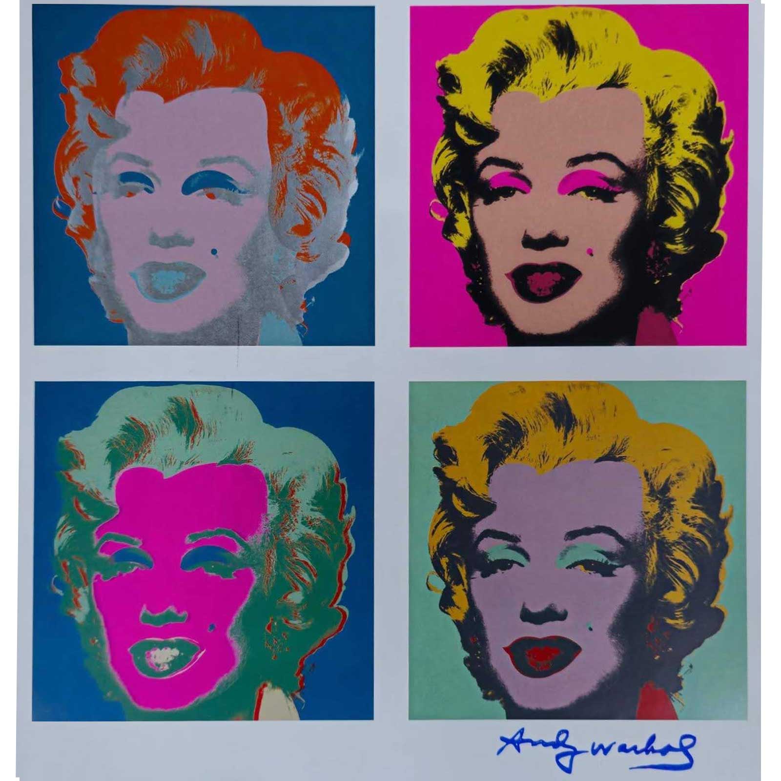 About this piece: Marilyn Monroe 4up by Andy Warhol. Framed in black.