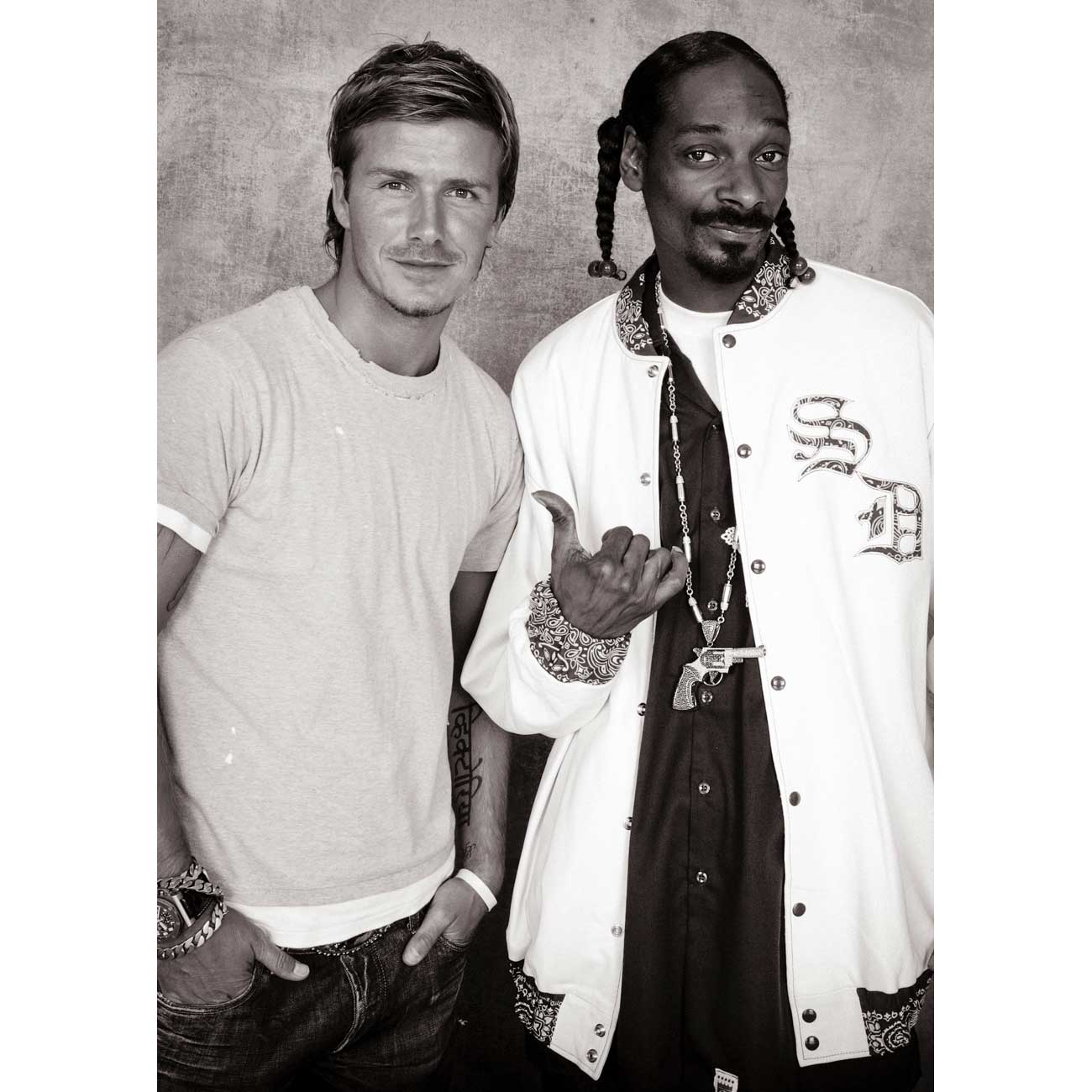 About this piece: Football and fashion icon David Beckham with rap icon Snoop Dogg. Photographed in London, 2007.