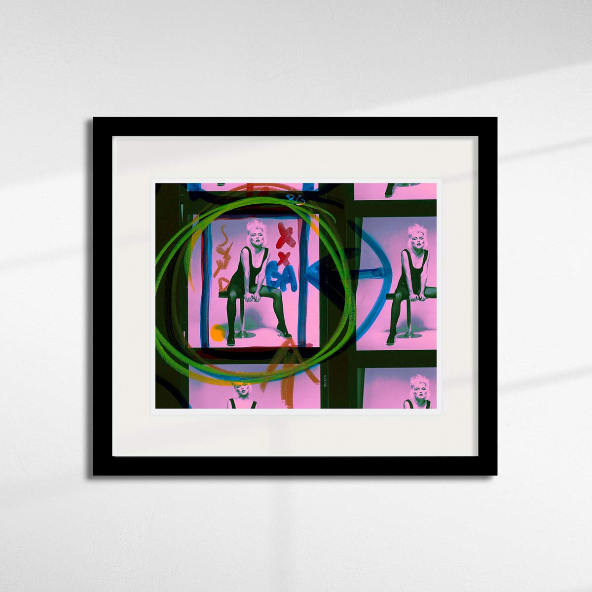 About this piece: Limited edition photographic print of Debbie Harry/Blondie contact sheet with pink wash. Photographed in London in 1977 by Brian Aris.