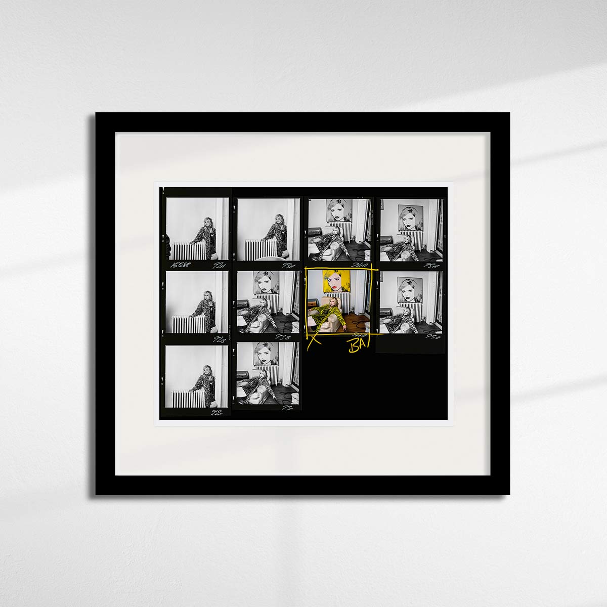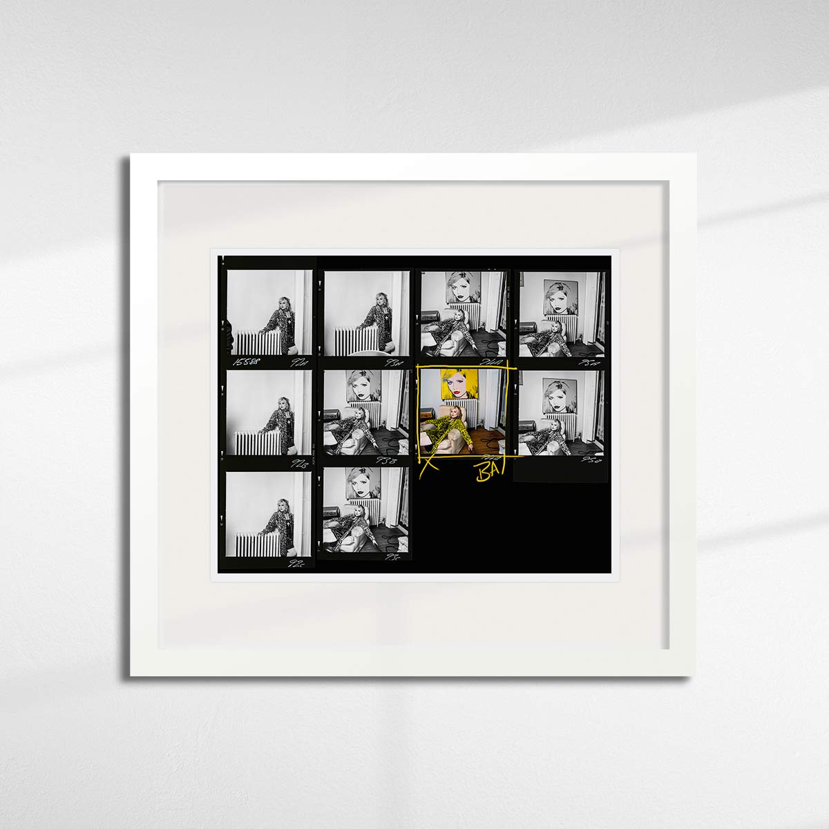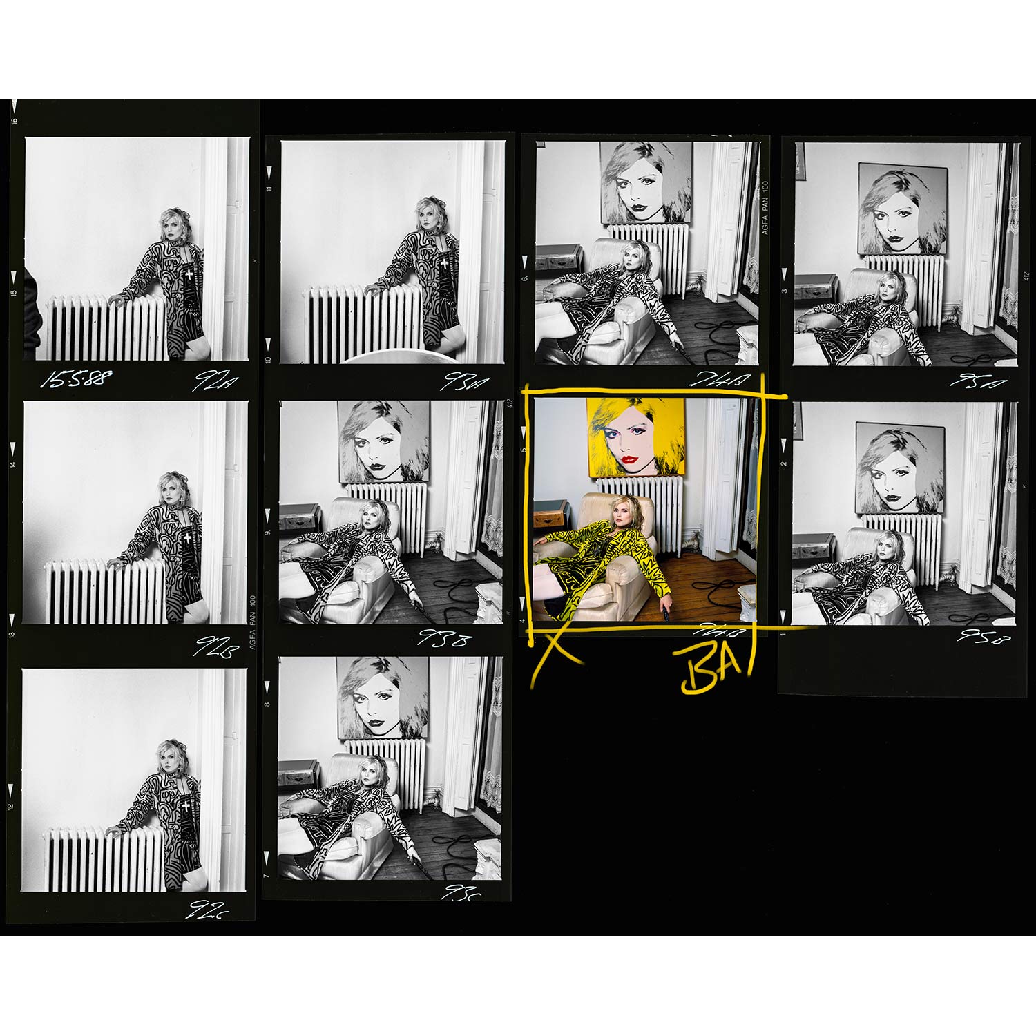 About this piece: Limited edition photographic print of Debbie Harry contact sheet. Photographed in her New York apartment in 1988 by Brian Aris.