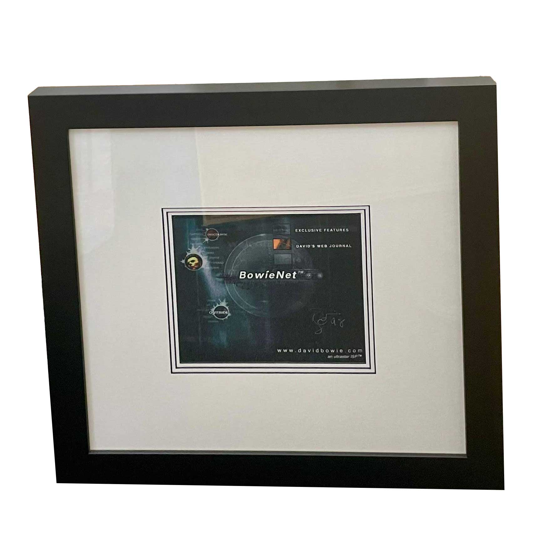 About this piece: David Bowie – BowieNet Hand-Signed Mouse Pad. Framed.