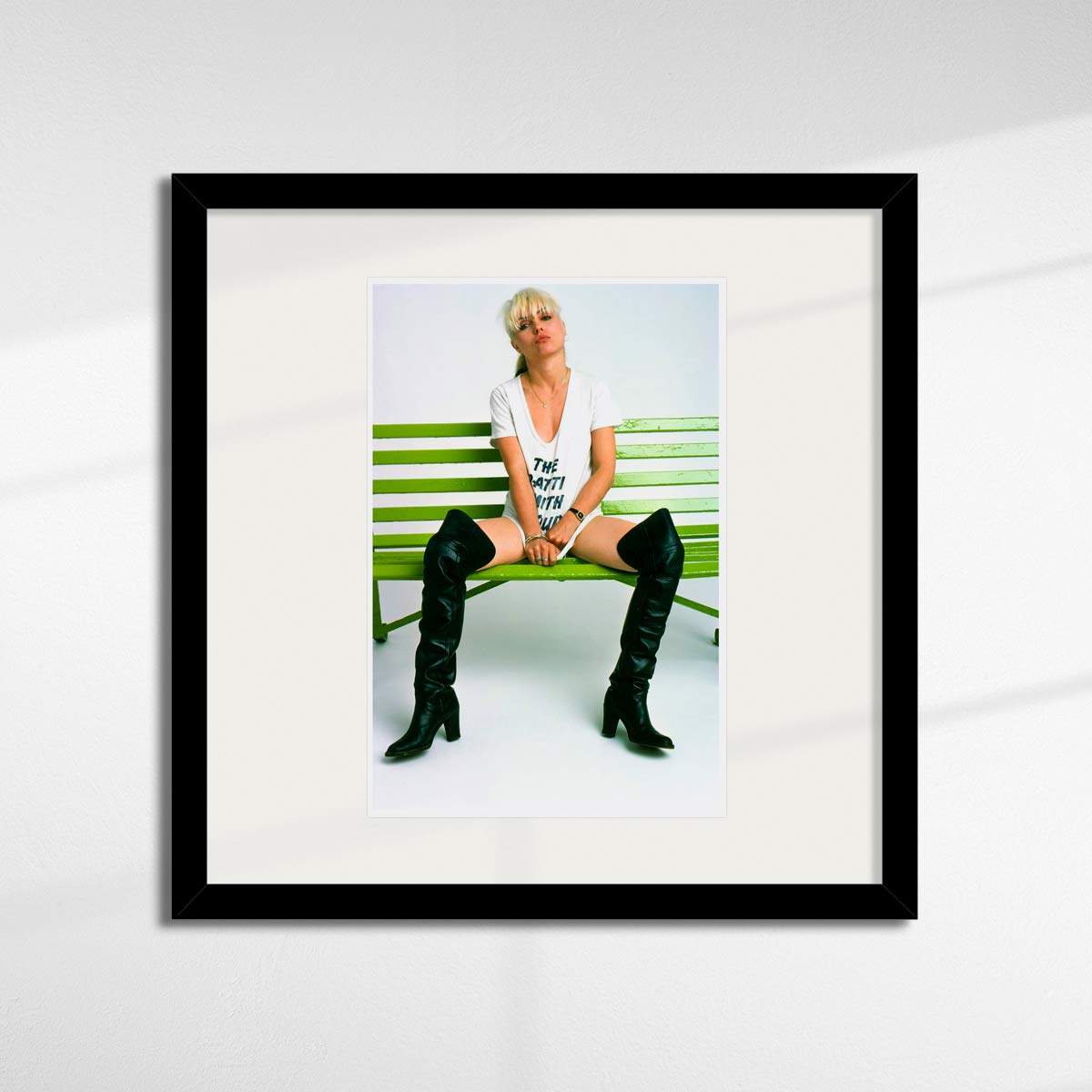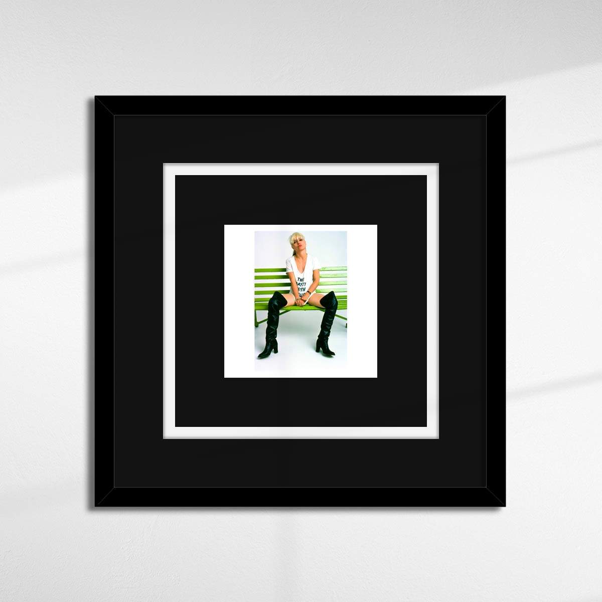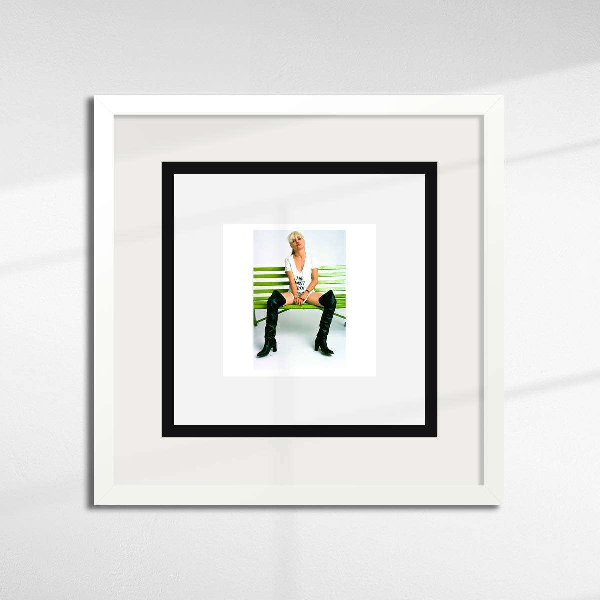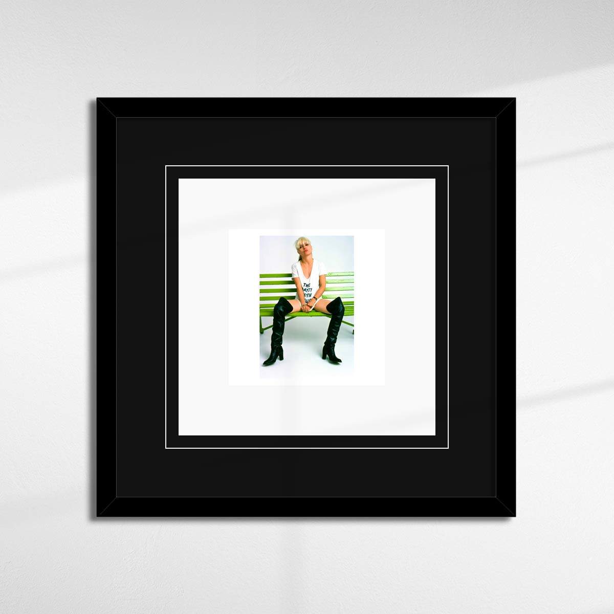 About this piece: Debbie Harry of ‘Blondie’ wearing a Patti Smith Group T-shirt shot by Duffy for the Observer Magazine in November 1977. This was one year before Blondie released her breakthrough album ‘Parallel Lines’ which reached number 1 in the UK Charts in 1978. The article was titled ‘Doing it Their way (like singing rock)’ and featured an interview with Debbie Harry who is described as ‘The Brigitte Bardot of rock.’ Archival Quality Pigment Ink Print comes ready to frame in a 19.75″ x 19.75″ (50cm x 50cm) mount with an image size of approx. 12″x 8.25″ (31cm x 21cm). The print is embossed with the Duffy Archive stamp. The reverse of each mount has a sticker detailing the history of the session and a hand-stamped logo from Duffy’s old camera cases.