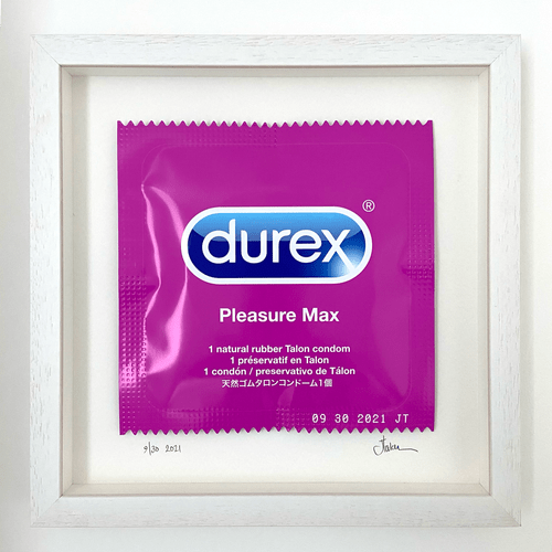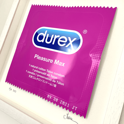 About this piece: Pleasure Max – Durex Pink is a giant 3D sculpture created with a Giclée print on Hahnemuhle Photo Gloss 260gsm, foil card and rubber.