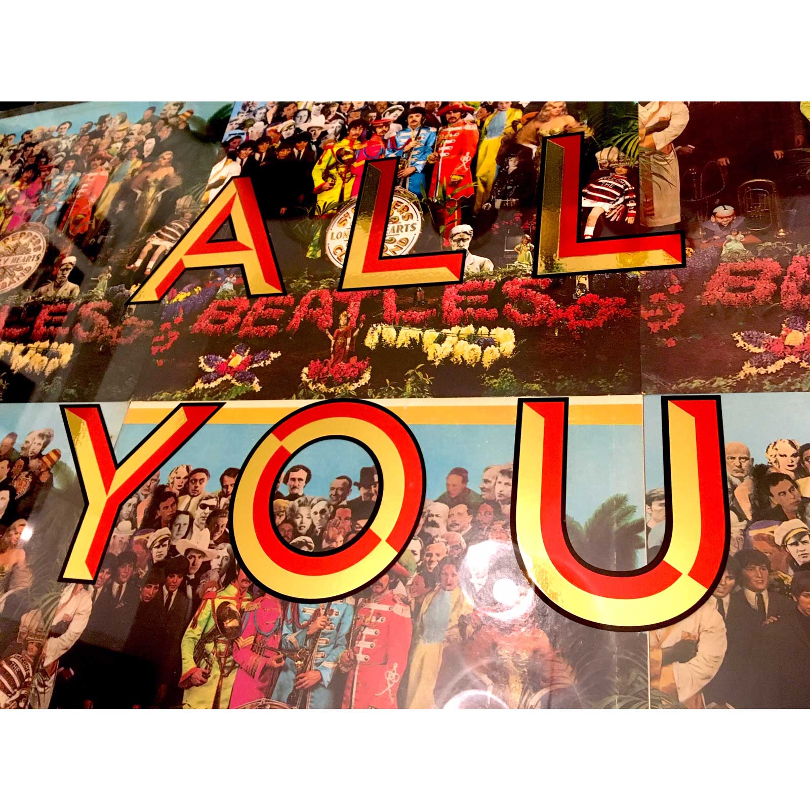 About this piece: All You Need Is Love (Sgt Pepper) – by Keith Haynes is mixed media with original album sleeves, in acrylic box with black wood frame.