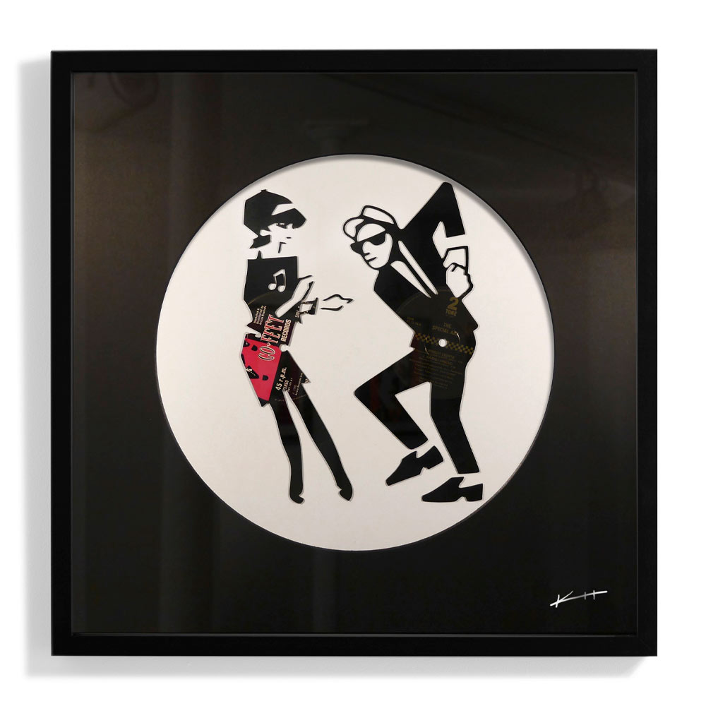 About this piece: Go 2 Tone by Keith Haynes is an artwork cut from original 2-Tone and Go Beat 12” vinyl, in a black wood frame.