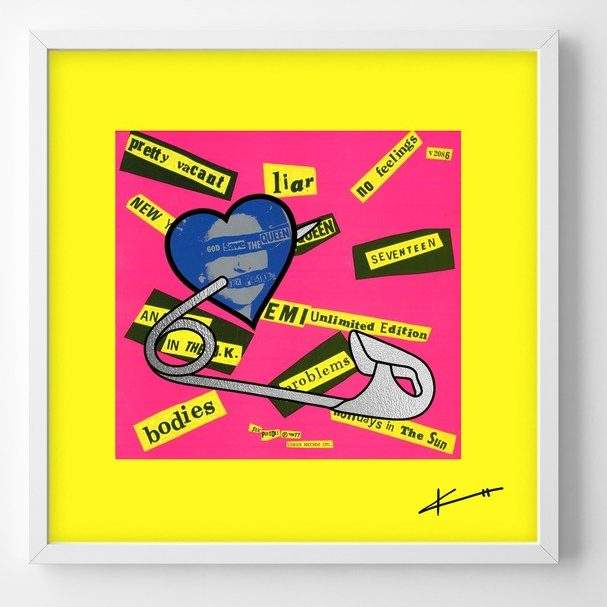 Edition of just 100 from various punk record sleeves. White wood frame included in price.