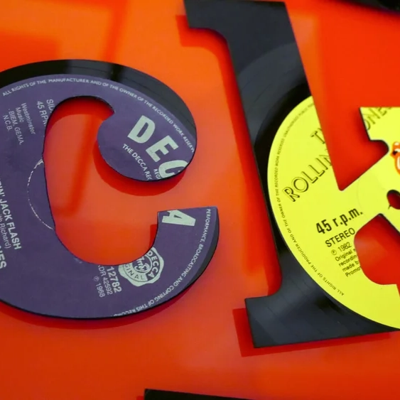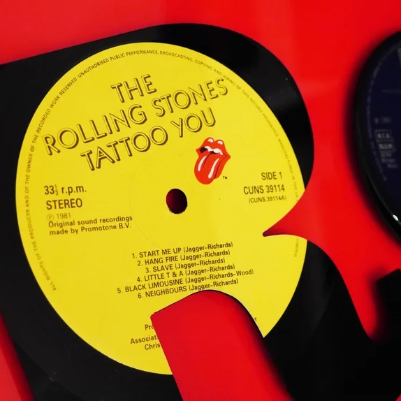 About this piece: It’s Only Rock n Roll. The Rolling Stones’ lyric created from their original 7” and 12” vinyl records.
