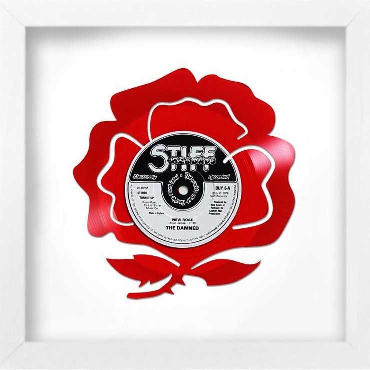 About this piece: New Rose – The Damned – by Keith Haynes is a mixed media artwork cut from original vinyl.