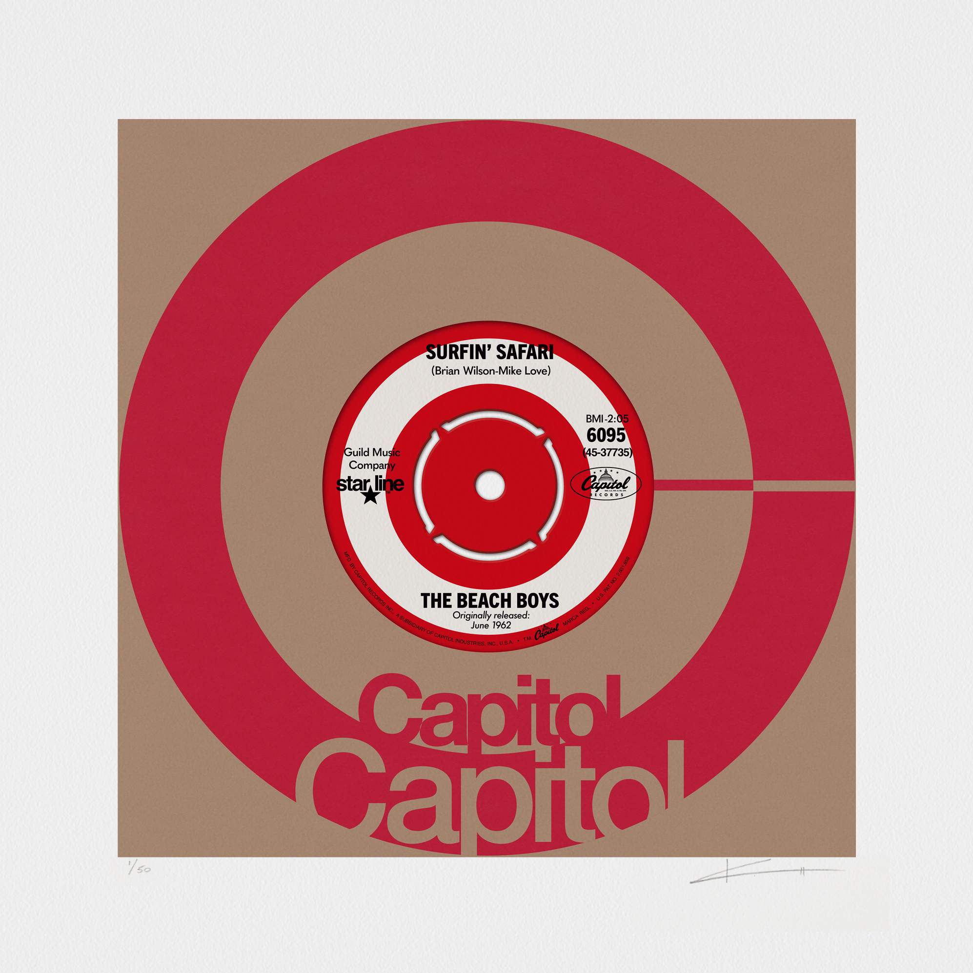 About this piece: SURFIN’ SAFARI – Beach Boys by Keith Haynes. From a new print series of digitally redrawn artworks celebrating hit singles on 45 in house sleeves. Limited edition archival print on Somerset paper.