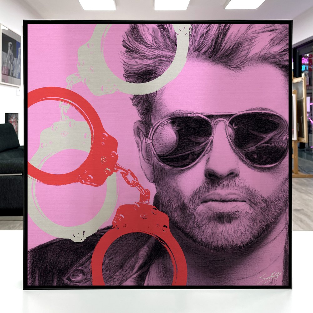 About this piece: George Michael rose to fame as a member of the music duo Wham! and later embarked on a successful solo career. He sold over 80 million records worldwide making him one of the best-selling music artists of all time. This piece is inspired by his infamous incident In 1998, where he was arrested in Beverly Hills after being involved in a “lewd act” in a public bathroom by an undercover police officer.