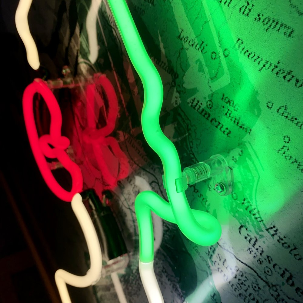 “I was the first artist to combine portraiture with neon art. The inspiration came from both Andy Warhol’s 1970’s / 80’s ‘celebrity portraits’ and the work of neon artists such as Dan Flavin, Tracey Emin and Chris Bracey”.