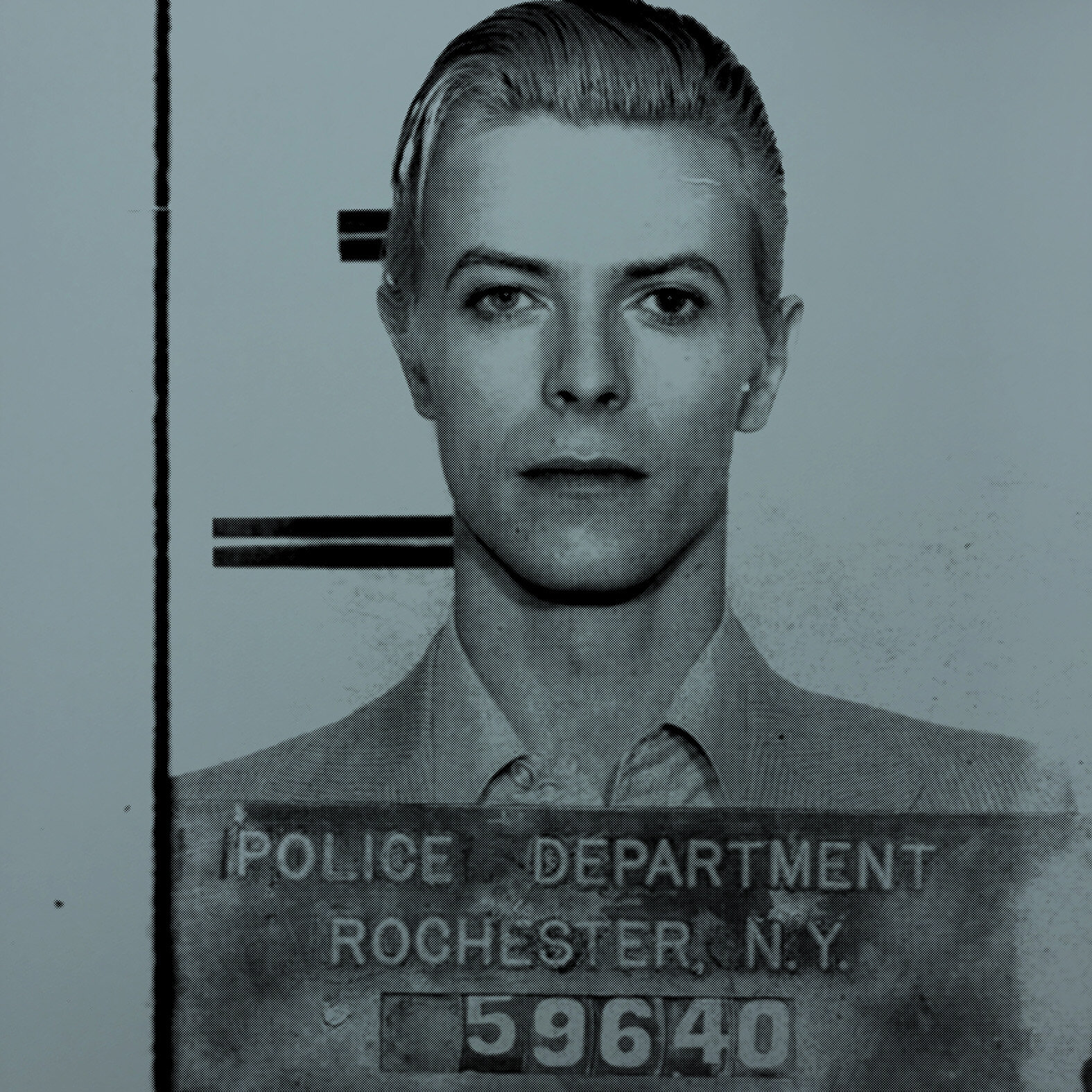 About this piece: Bowie was arrested on March 21, 1976, after a performance in Rochester, New York. Bowie was held with three others including Iggy Pop, for several hours and then released on $2,000 bond. Bowie later pleaded not guilty and a grand jury decided to pass on the case.