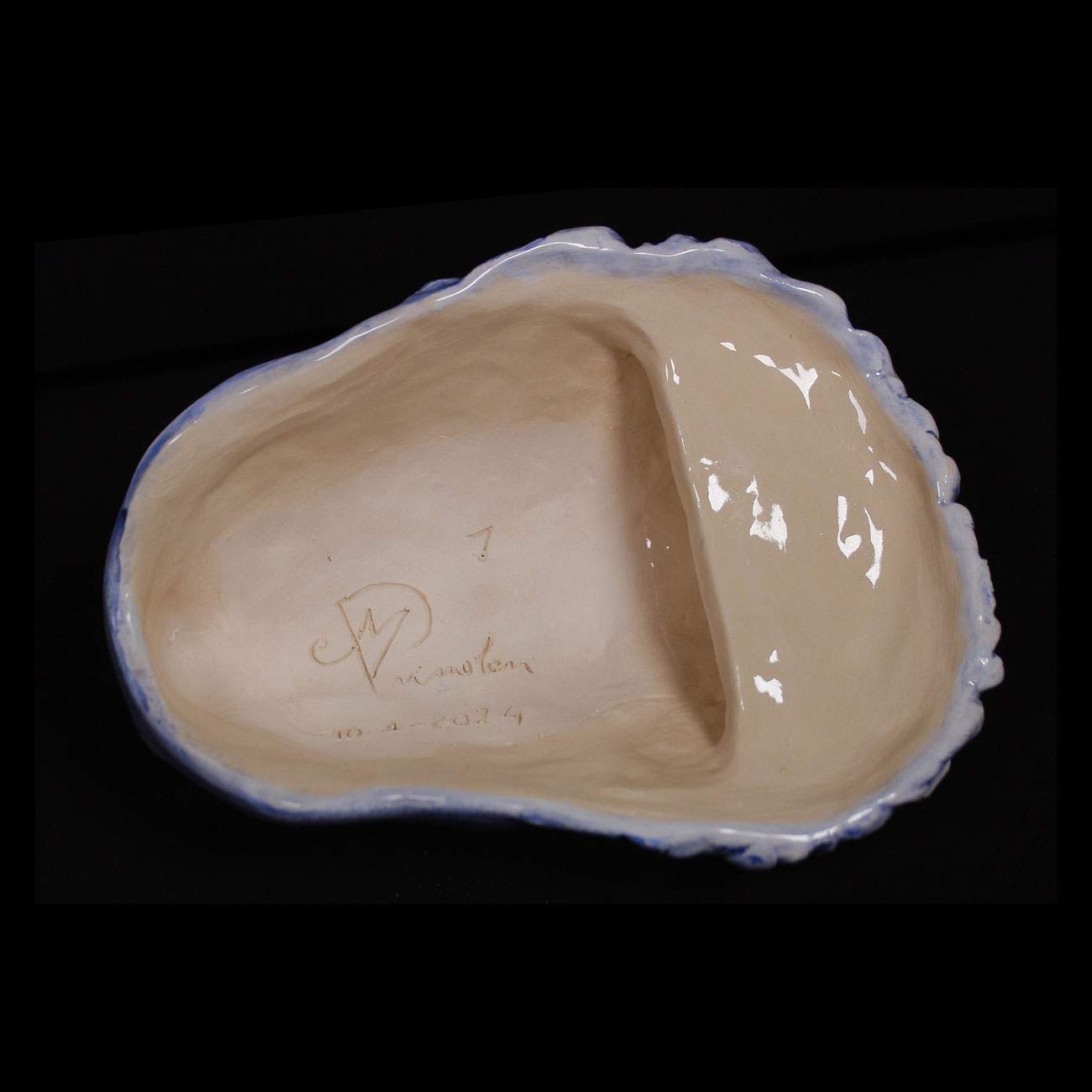 Process by Maria: ‘Blue Jean’ sculpture inspired by David Bowie. A stunning hand made ceramic by the Italian sculptor, Maria Primolan. Painted blue and glazed.