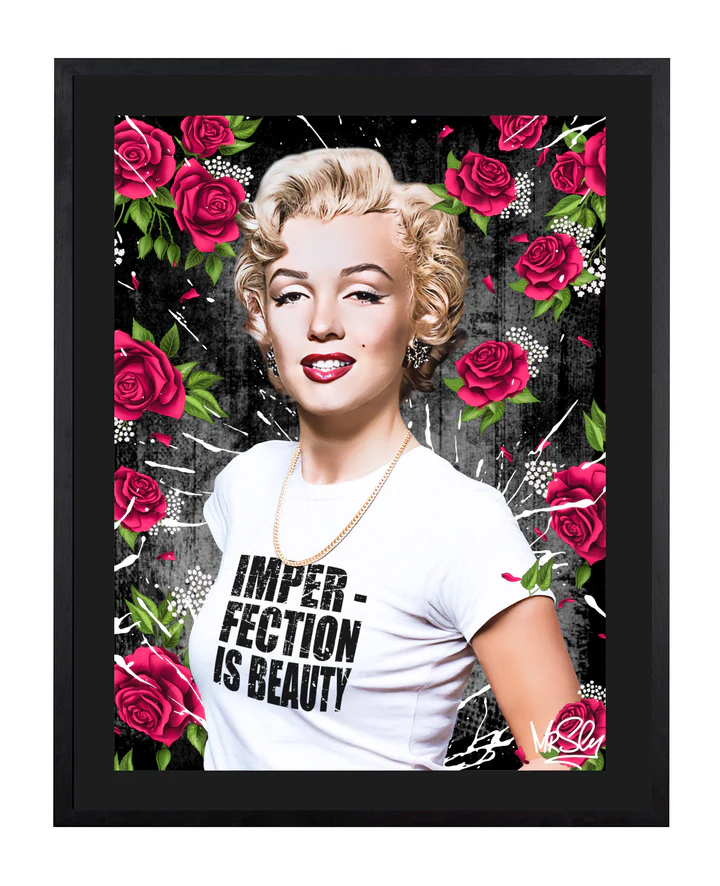 This dynamic piece blends two powerful images into one, shifting as you move to reveal its layered meaning and pop-culture punch. A striking tribute to beauty, fame, and rebellion, it captures Monroe’s iconic spirit through Mr. Sly’s unique lens.