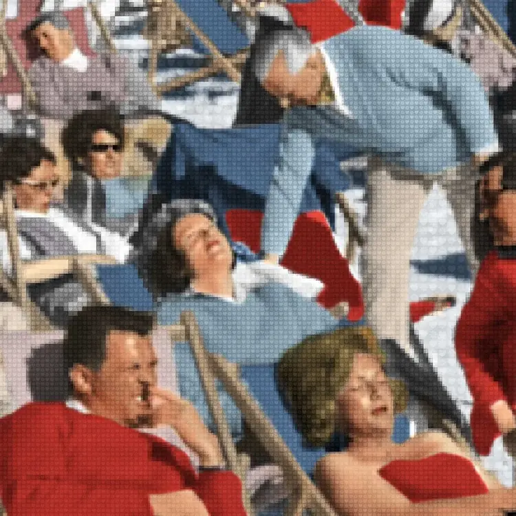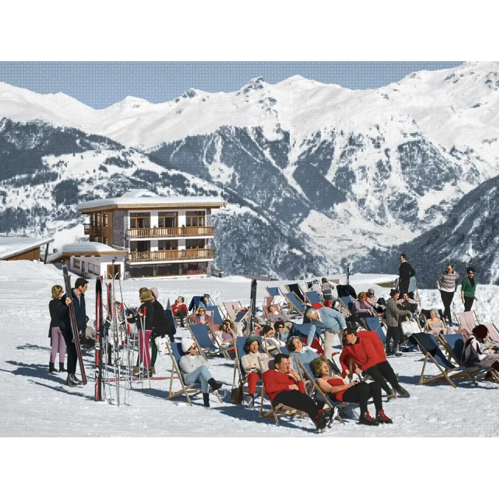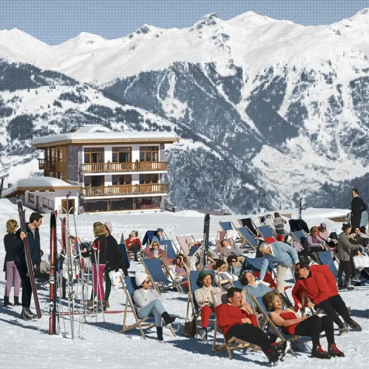 About this piece: Slim Aarons referenced prints by Nick Holdsworth are officially licensed. Deluxe aluminium print with floating frame. Signed on reverse with signed and numbered certificate of authenticity. The original painting was created from pixels repeated graphics and hand painted with ink using an airbrush.