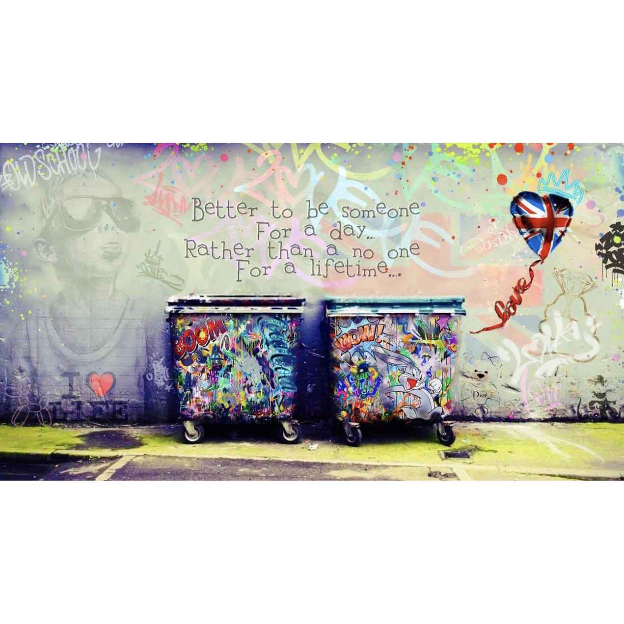 About this piece: Be Someone “Better to be someone for a day, than no-one for a lifetime” by #OneLife183 is a hand embellished, limited edition, canvas on board artwork. Comes in a white frame. #OneLife183 is known for his distinctive pop paintings which present complex collage techniques, each piece is a dynamic creation of mash up pop culture which aim to critique the banal and the mundane. His artwork challenges mainstream media values and inspires a sense of freedom in life.
