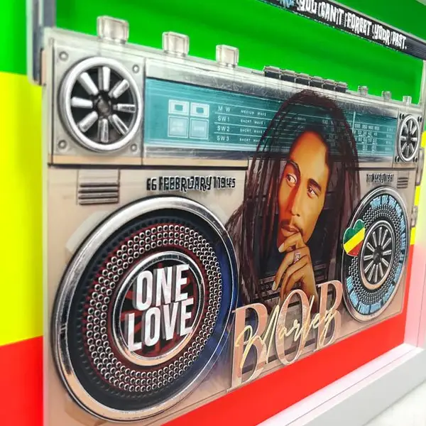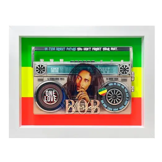 About this piece: Bob Marley – Cassette Tape Player by Sannib. Acrylic Panel + 3D Textures and Gloss Varnish. Signed & Numbered.