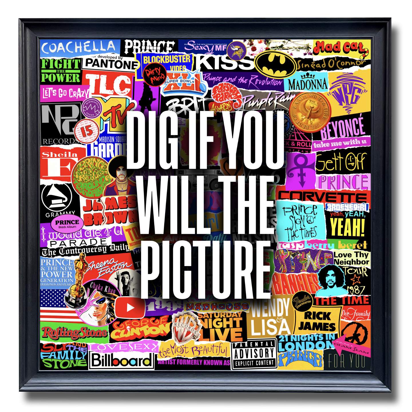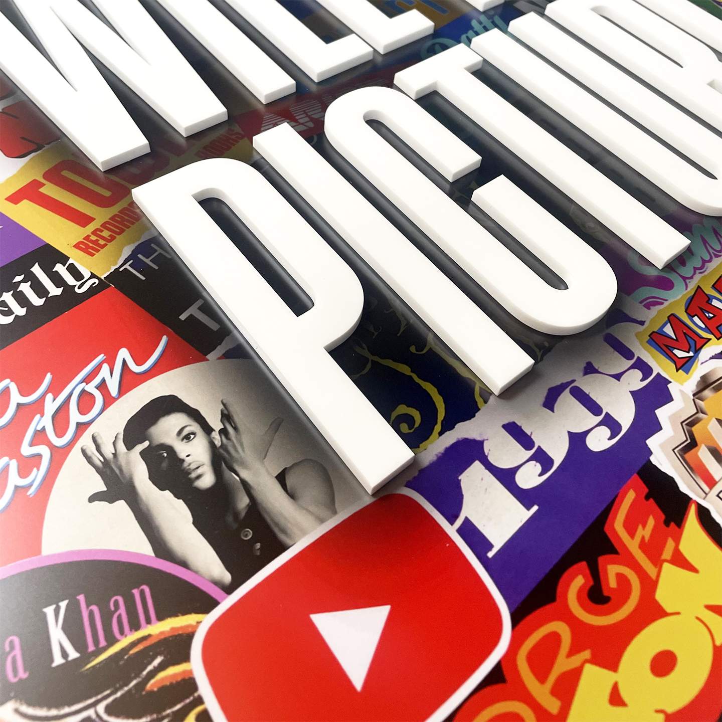 About this piece: Prince, When Doves Cry. Mixed media with 3D lettering (White matt Perspex 5mm in depth).