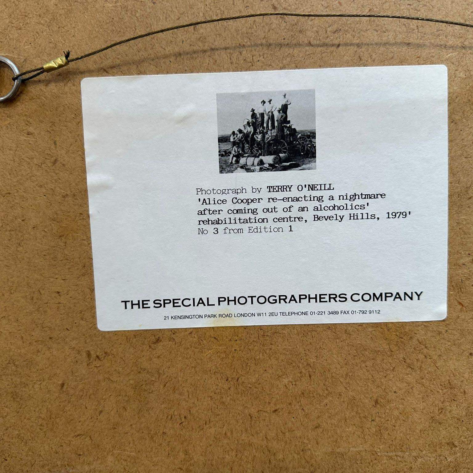 Rare, limited edition print of the American rock singer Alice Cooper re-enacting a nightmare after coming out of a rehabilitation centre for alcoholics, Beverly Hills, 1979. Number 3 from edition 1.