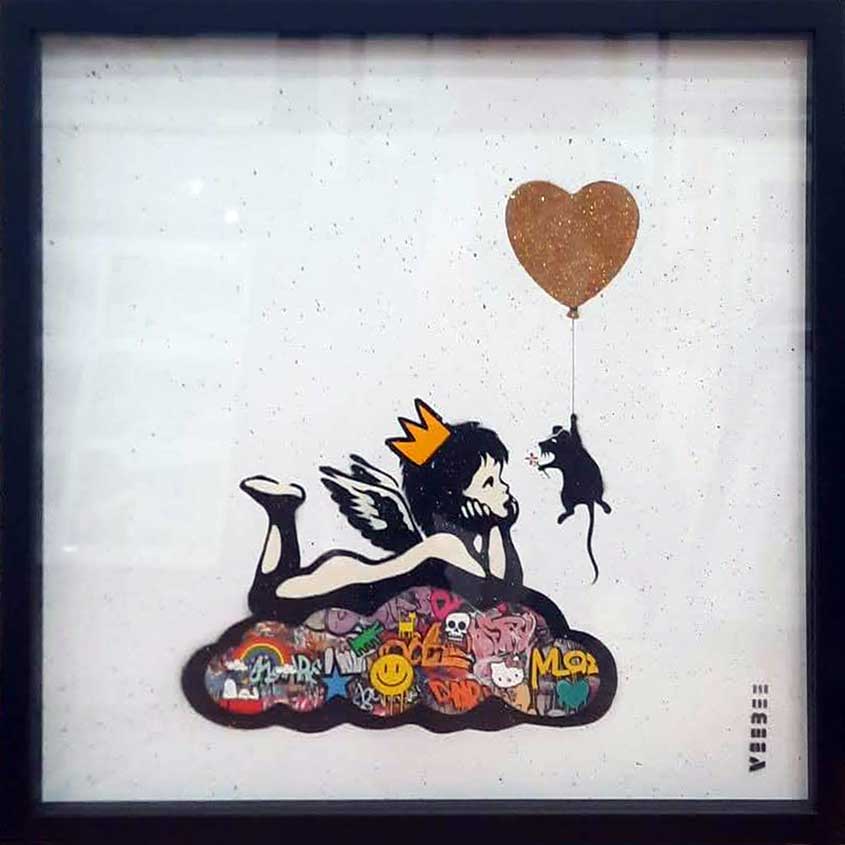 About this piece: Mixed media with hand stencilling using spray paint and hand embellished. Signed and numbered by the artist. Framed.