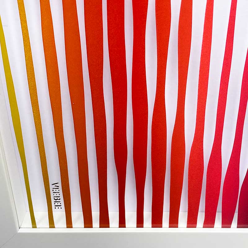 About this piece: Painted on the reverse side of the glass using hand cut stencils and spray paint. the white areas are actually clear glass and the white background can be seen through it. the deep box frame gives the portrait a 3 dimensional feel and the illusion of floating in the air.
