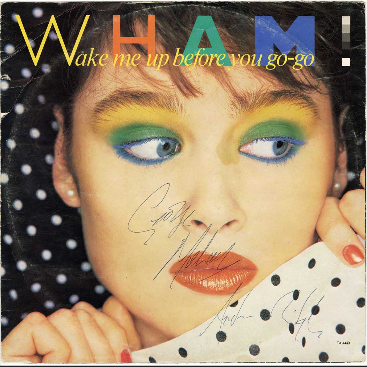 About this piece: George Michael & Andrew Ridgeley Signed “Wake Me Up Before You Go-Go” Record. Framed in black with white mount and black core. This record features the iconic 1984 hit single by Wham! Both George Michael and Andrew Ridgeley have signed the cover, preserving their vibrant signatures alongside the record. With provenance/Certificate of Authenticity. Please note: The vinyl label design may vary from the one pictured.