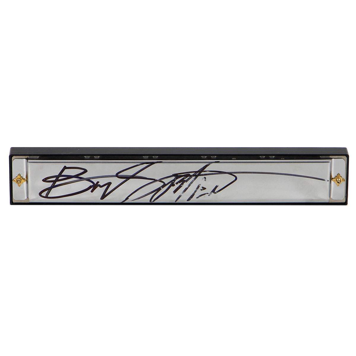 The Boss himself, Bruce Springsteen, has boldly signed the back of this Huntington 24 Hold Deluxe Harmonica, in black felt-tip marker. Springsteen’s iconic use of harmonica in the studio and on stage is well-known to all his fans. Owning a Springsteen signed harmonica is a must-have for any die-hard fan!