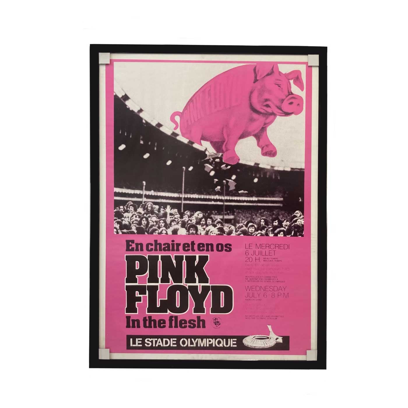 About this piece: Original Pink Floyd tour poster for In the Flesh Tour – Le Stade Olympic performance.