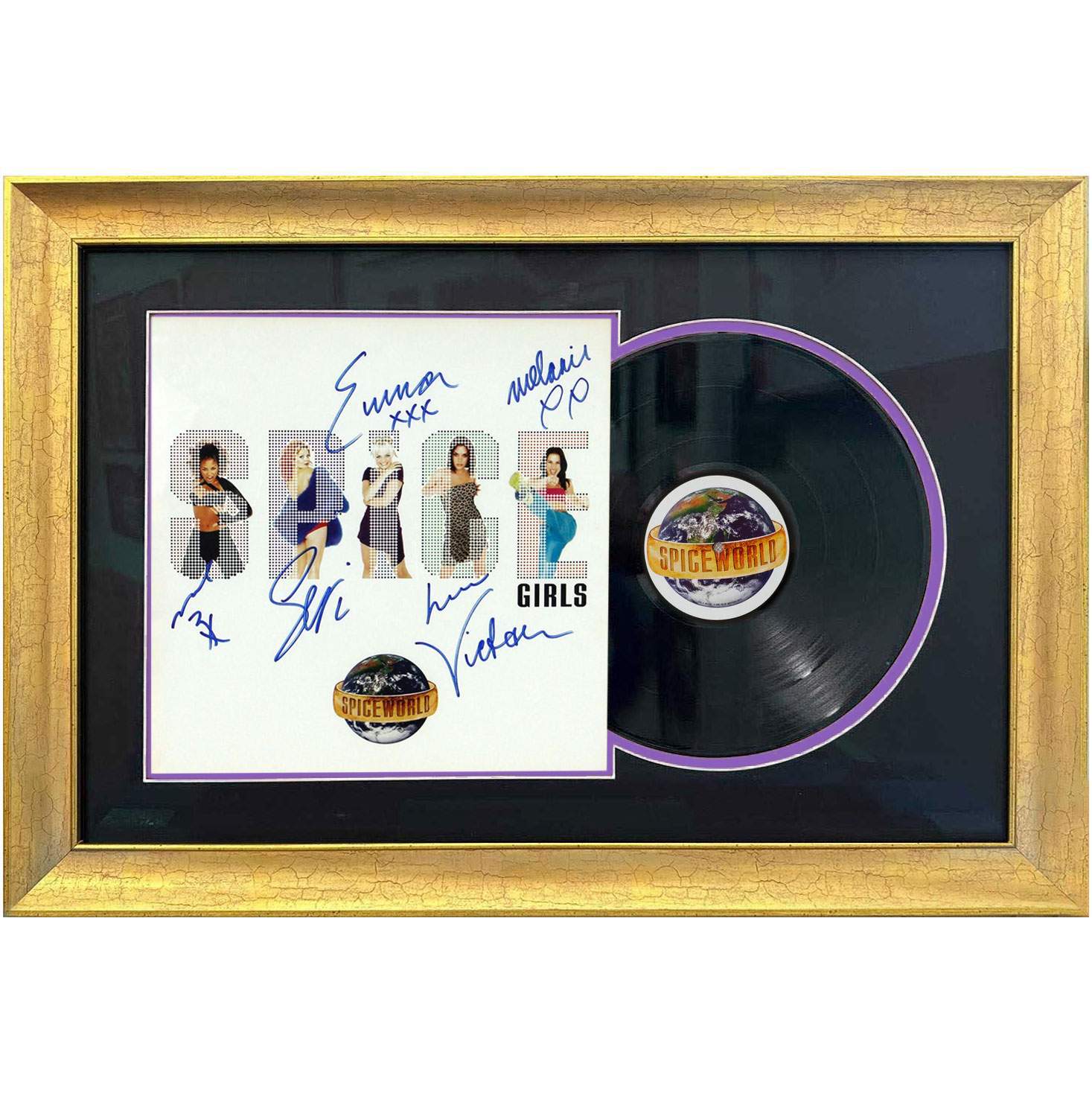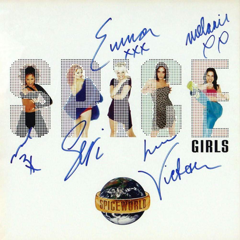 About this piece: Spice Girls Signed “Spice World” Album Flat. This album flat of “Spice World” is signed by all five members of the Spice Girls using a blue felt tip pen. In good condition, preserving the integrity of the signatures and the album flat. Presented in a gold crackle frame and double mount. Provenance/Certificate of Authenticity.